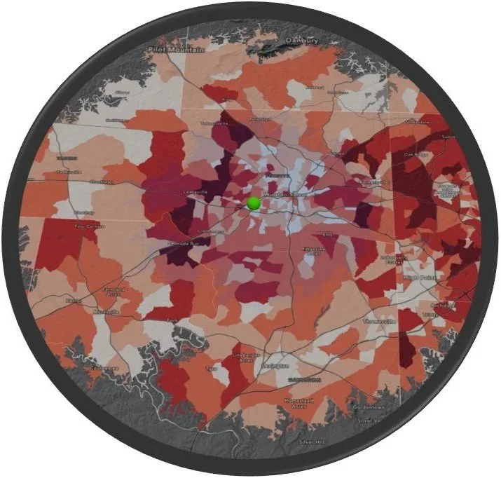 At Spatial Markets NC, sound data science principles, human, economic, and environmental geography guide our data analysis & product development. We work with a variety of subject matter experts to craft precise targeting algorithms within our custom three-tiered mapping application to achieve strategic market connections and analysis.